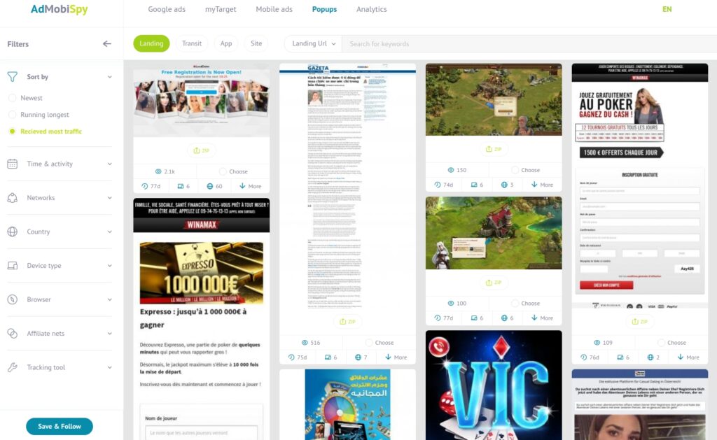 Spy tools are an essential part of scaling profits in the affiliate marketing industry as an advertiser. They allow you to get a peek at what your competitors are up to in terms of approaches and creatives. For popunders, the spy tool services might also serve as landing page editing solutions.
