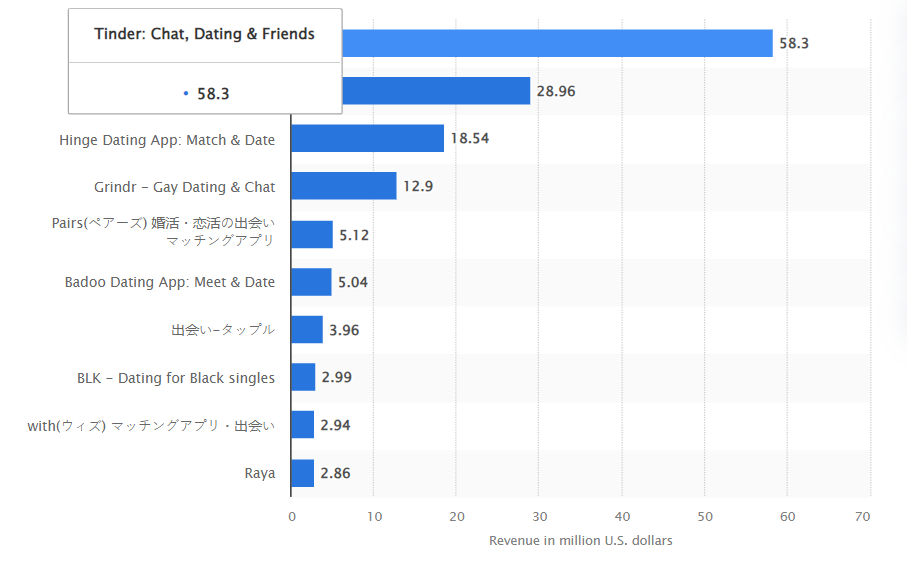 Более того, доходы от покупок в онлайн дейтинг приложениях только растут. В феврале 2024 года Tinder заработал одну из самых больших сумм за последнее время — 58 миллионов долларов, в то время как выручка других приложений также продолжает расти, поскольку пользователи действительно хотят найти свою любовь и готовы платить за это!
