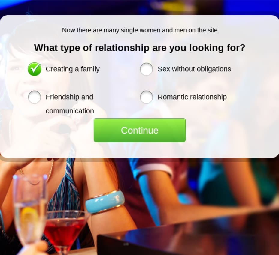Опросники на данный момент являются одним из самых популярных подходов страниц прелендингов почти для всех топовых вертикалей, включая дейтинг. Они могут крайне эффективны для вовлечения целевой аудитории, например, для дейтинга они могут уточнять пол, предпочтения или просто демонстрировать интерес к юзеру. Таким образом, опросники предлагают самый располагающий подход, подогревая интерес аудитории к офферу.