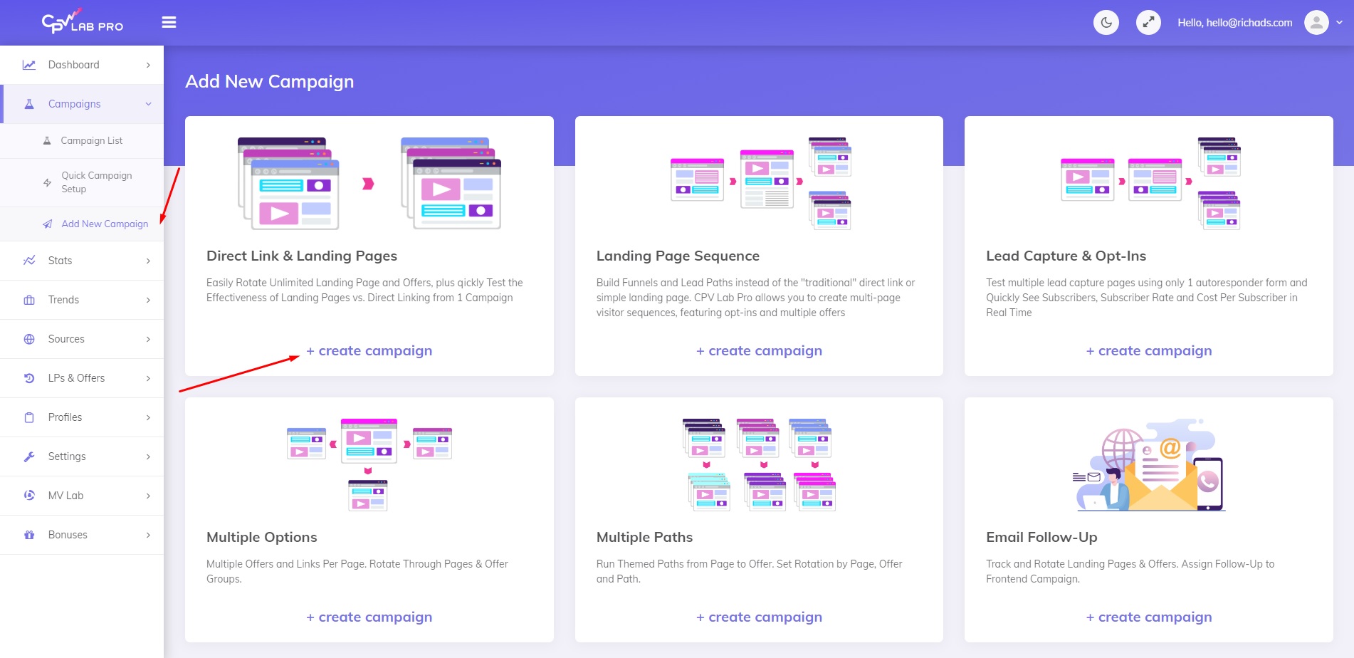 Step 4. How to create a tracking campaign at CPV Lab Pro