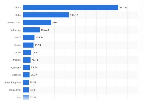 Statistics tell that the most significant number of phones is in China, India, the USA, Indonesia, and Brazil. Moreover, the mobile phone markets in China and India will continue to grow, and hence the potential traffic will rise. Now no more than 70% of the population own mobile phones there.