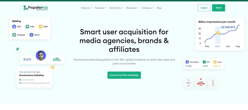 PropellerAds is a Finance multi-source advertising platform providing high traffic quality for advertisers. The network has been on since 2011 and over the years has gained the results of 1 billion global audience. PropellerAds offer an easy-to-start service with optimization tools and diverse niches compatibility.