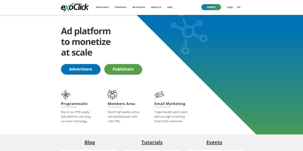 ExoClick is an ad platform, working with more than 20 ad formats and providing services across 65000+ web and mobile publishers. The advertising network has spread worldwide, allowing to run campaigns on popunders, push, native, banner, direct click and other ad formats. The platform also features RTB (real-time bidding) which allows to get the best optimal bids for campaigns on auction.