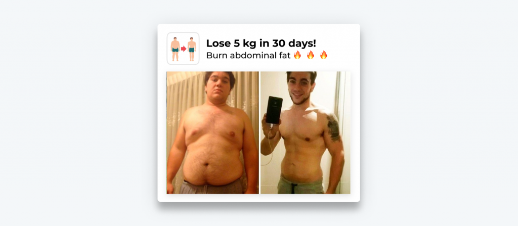 If you were in doubt which approach to choose in order to get exactly into the problem of your target audience, this part of the article is for you. We have collected 10 examples of weight loss advertising ideas, relying on the expectations and desires of potential buyers.