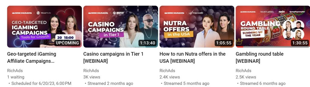 The RichAds YouTube channel is an excellent source of information on all aspects of affiliate marketing. The channel features short videos, webinars, and roundtable discussions with experts. You can also find the other video interviews from the Ads&Grans talks.