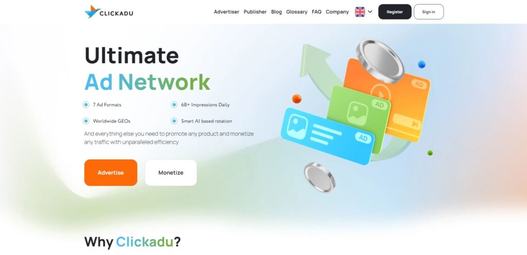 ClickAdu is a no doubt top advertising network for affiliates who are eager to work as with Tier 3 geos like India as for other 200+ regions all around the world. The network’s real coverage exceeds 6 billion daily impressions and 3000 active publishers on 7 available traffic types: banner, popunder, push, instant messages, video pre-roll, in-page and skim. The ClickAdu platform offers valuable insights on current traffic performance, along with conversion tracking compatability and optimization tools to achieve better ROI!