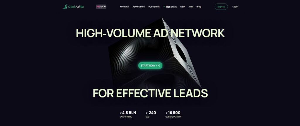 Clickadilla is one of the most popular advertising networks to launch ads in Asia, especially if the chosen geo is India. The traffic opportunities at the platform include 13 formats like popunder, video, in-page, push, banner ad, direct links, native, interstitial, gallery and in-app with oureach volumes up to 4.5 billion impressions every day! As a plus, the ClickAdilla owns their private affiliate network HotOffers, granting access to profitable products a few clicks away.