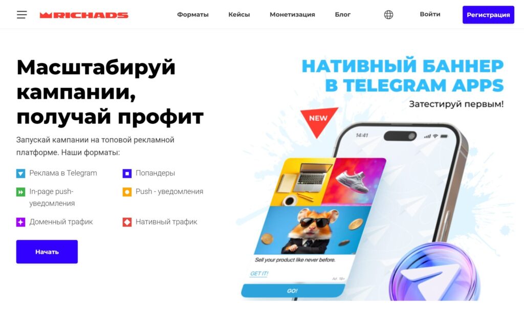 Рекламная сеть RichAds первой дает возможность купить новый формат рекламы — нативную рекламу в мини приложениях Telegram. Рекламу можно запустить самостоятельно через рекламный кабинет сети без ограничений по гео с минимальным депозитом $150.