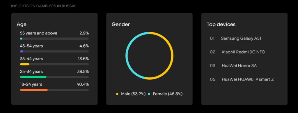 В этой части разберем основные моменты относительно подготовки к проливу гемблы на Россию, такие как портрет аудитории, популярные игры и методы оплаты.