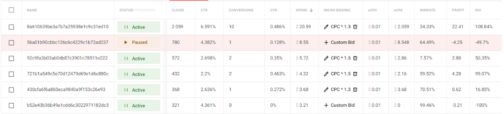 Также на основании полученных данных определили и добавили в блеклист паблишеров, по которым не было конверсий, либо была высокая стоимость закупки.