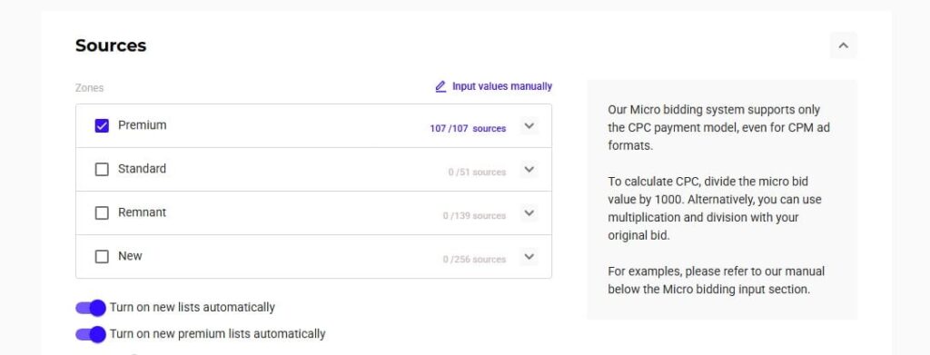 Если вы по-прежнему сомневаетесь, что спортивный трафик, который вы собираетесь купить, будет действительно высокого качества и принесет релевантных лидов, рассмотрите запуск на Premium-источниках в RichAds. Мы традиционно делим весь трафик платформы на 4 группы: Premium (самые конвертящие источники под любое гео и оффер), Standard, Remnant и New. Премиальный саблист содержит в себе уже протестированные конвертящие источники, на которых рекомендуется запускаться изначально, тогда как остальные можно использовать для масштабирования РК.