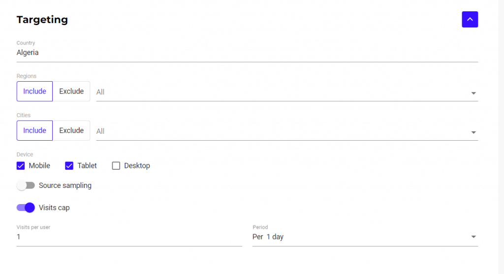 - Set up the targeting. Select all the parameters for the successful campaign operation so that the settings are saved when the campaign is duplicated.