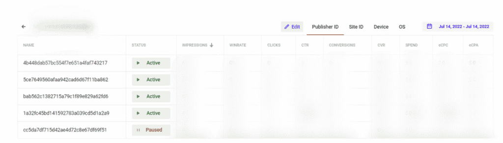 2. After that, you will get to the main page of the Optimizer. This feature offers sorting by five targeting — sublists, publishers, sites, OS and devices: