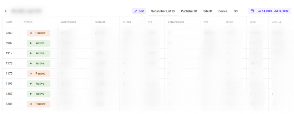 Due to this function, you can quickly check statistics on targeting settings and disable ineffective elements, as well as add them to a black or whitelist.