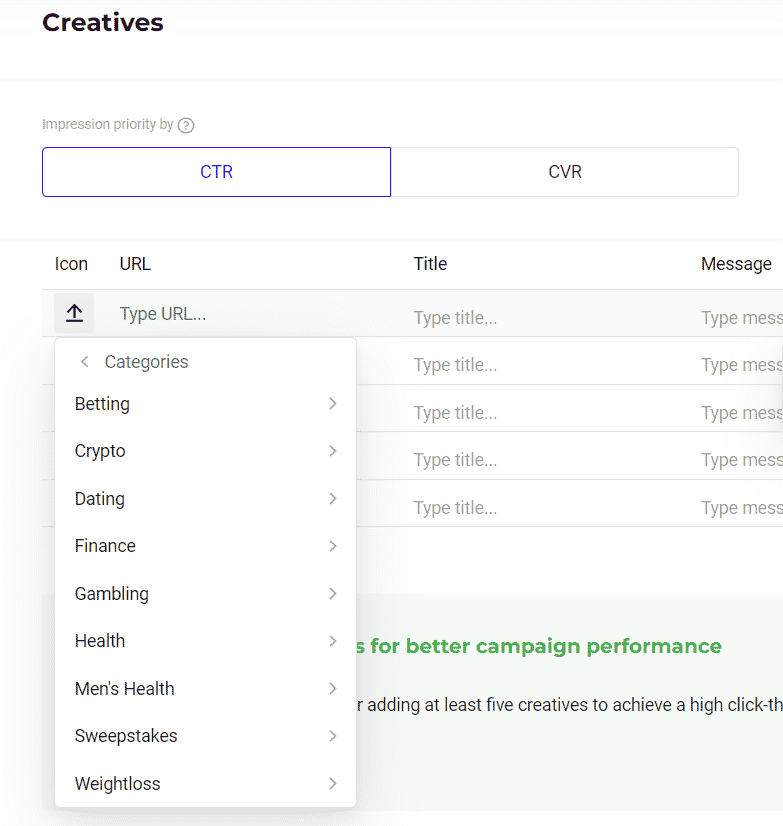 And if you’re busy and don’t have time to come up with converting creative bundles, you can always contact your manager and he will prepare creatives for you for free.