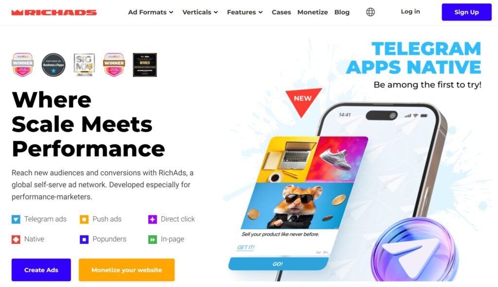 RichAds advertising network is the first to allow advertisers to run telegram ads in the advertising network. At RichAds advertisers can buy a new advertising format — native advertising in Telegram mini apps. In the article, let’s dive deeper into this new ad format and how to use RichAds to launch it.