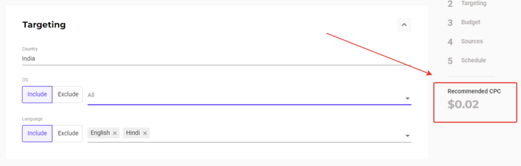 When you choose the geo, the platform will show you the recommended CPC for it and you can consult with the manager about pricing.