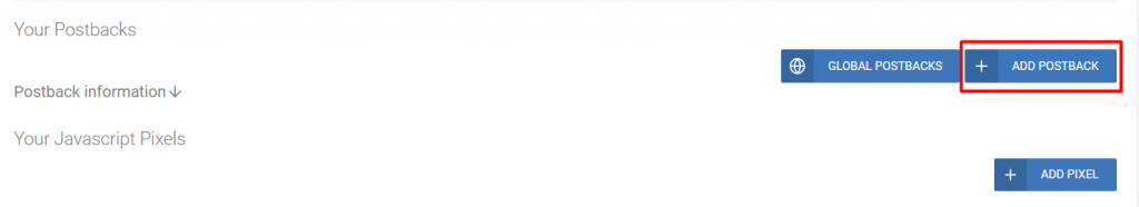 Now you need to set up the offer postback at the affiliate network. In order to do that, proceed to the offer and press “Add postback”.