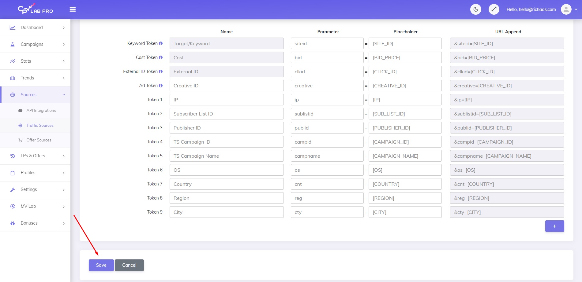 Step 1: How to add an ad network to traffic sources at CPV Lab Pro tracker