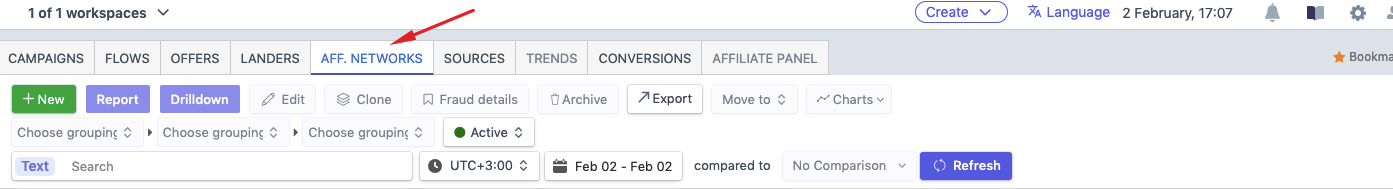 Click the green “New” button and in the drop-down list, choose “Affiliate network”.