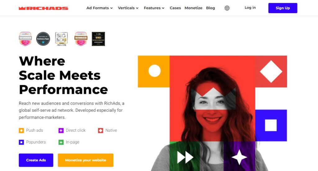 The RichAds advertising network is one of the biggest ad networks that was founded back in 2018 as a push ad network RichPush. The network now has 5+ billion impressions a day and works on the CPC and CPM models with the minimal price per click starting at $0,005.
