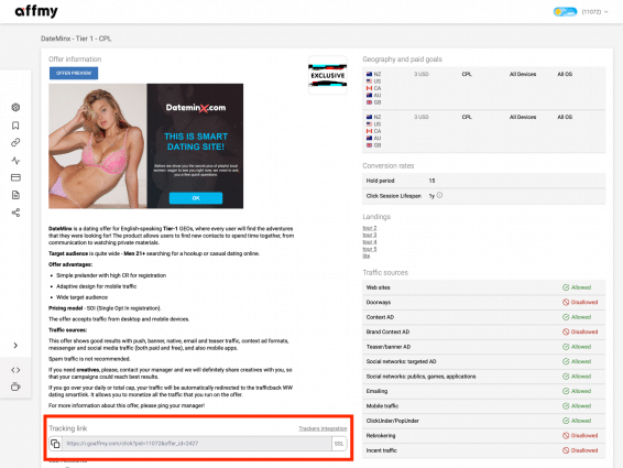 Find the necessary offers, copy the link, paste it into the tracker and it’s done!