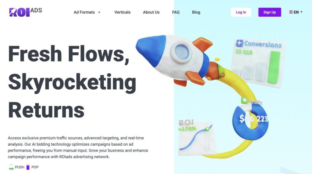 ROIads is a fast-growing push and pop ad network with 900M daily impressions, delivering high-quality finance traffic for loans, credit cards, banking, forex, and crypto offers. Its AI bidding technology and premium traffic sources ensure efficient lead generation and high conversion rates. With global reach and advanced optimization tools, ROIads is a top choice for scaling finance campaigns profitably.